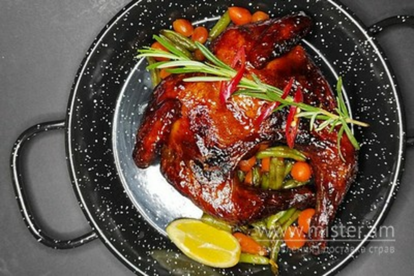 Шашлик зі свинини, шашлик з курки, лаваш з моцарелою, люля курячий, картопля по-уланівськи, кукурудза гриль, соус томатіно та BBQ.