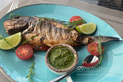 Rivali Дорадо на грилі з соусом "Сальса Верде" (за 100 г)
