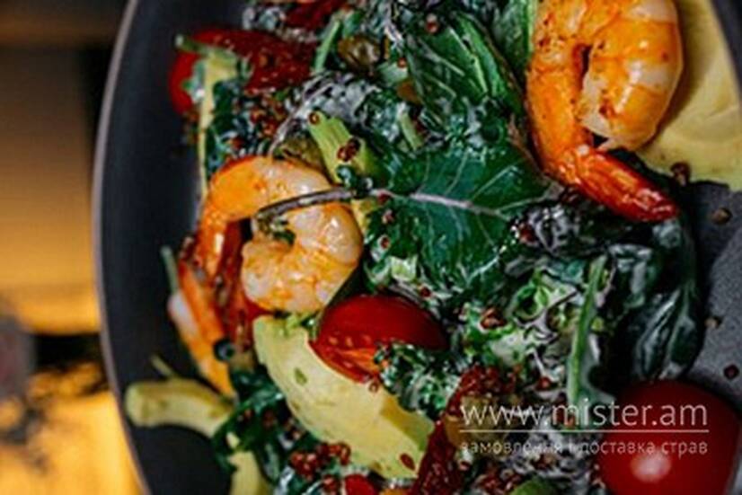 Rivali Салат з тигровою креветкою, кіноа і вершковим соусом