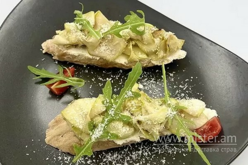 Брускети з цукіні у маринаді та сиром Філадельфія