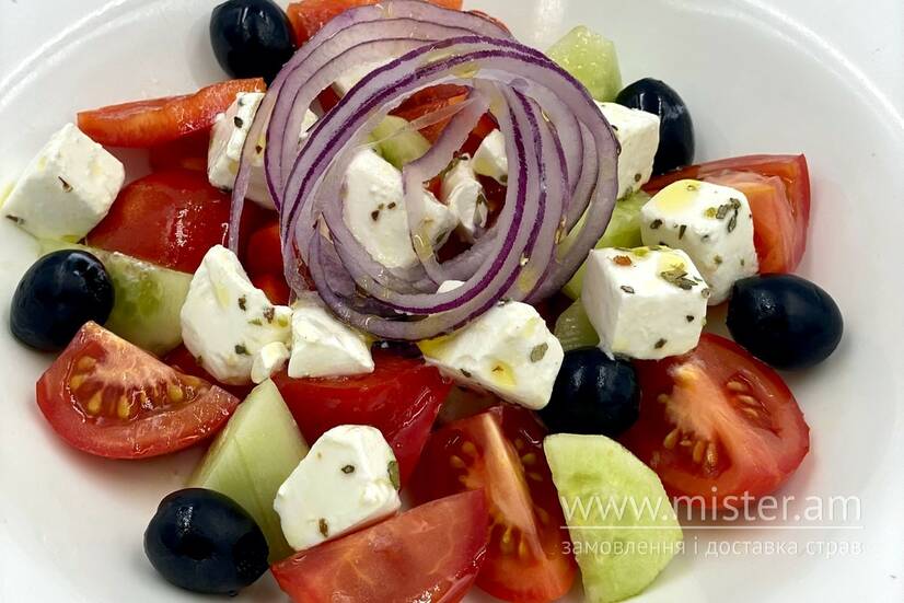 Салати: Овочевий салат по-селянськи, Салат "Капрезе з соусом Песто", Салат з баклажанами обсмаженими в японських сухариках Panko, Салат "Цезар" з куркою, Гриль-салат з телятиною, Салат з курячою печінкою фламбе та сиром Дор блю, Салат з качиною грудкою та інжиром, Салат "Цезар" зі слабосолоним лососем, Салат з рукколою, креветками та сиром Філадельфія, Салат "Dolce al pomodoro"