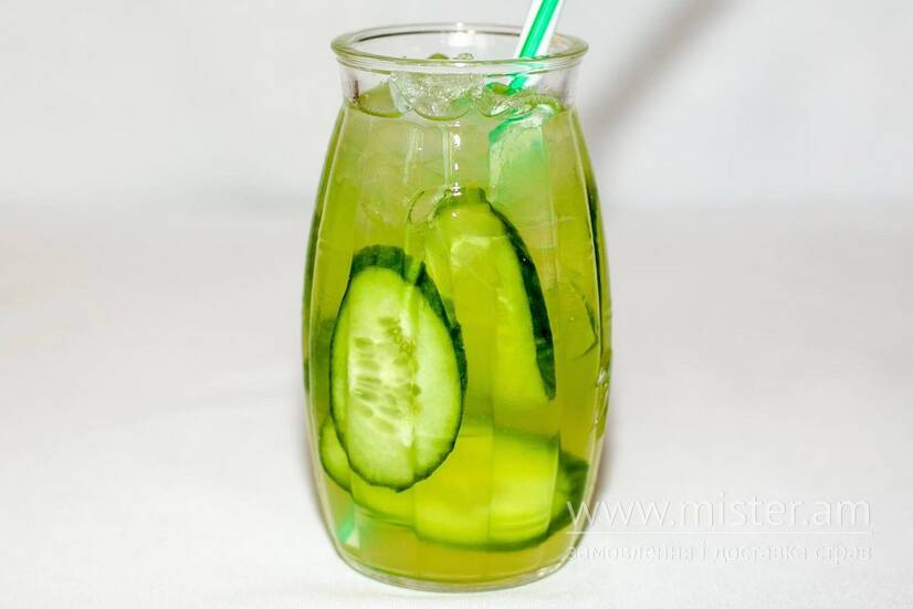 Сироп огірок, сироп маракуйя, фреш лимон, вода газована.