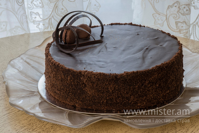 Шоколадні бісквіти просочені сиропом з додаванням коньяку, перемащені класичним шоколадно-масляним кремом Прага, верхній шар торта покритий абрикосовим джемом.