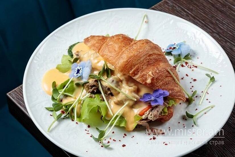 Справжній вибух смаку! Пухкий круасан перетворюється на бургер, в якому соковита томлена свинина поєднується з ніжною цибулею конфі та вершковим сирним соусом. Елегантна альтернатива класичному бургеру, що зачаровує з першого шматочка!