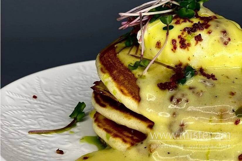 Bakery & Brunch Панкейки з соусом Голландез та беконом