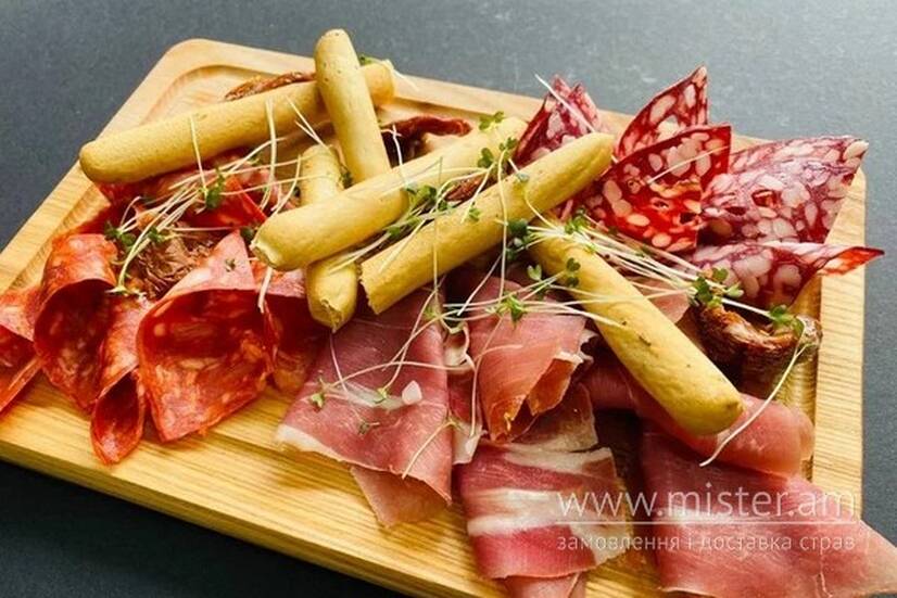 Асорті найсмачніших ковбас із хамоном та хрусткими грісіні.