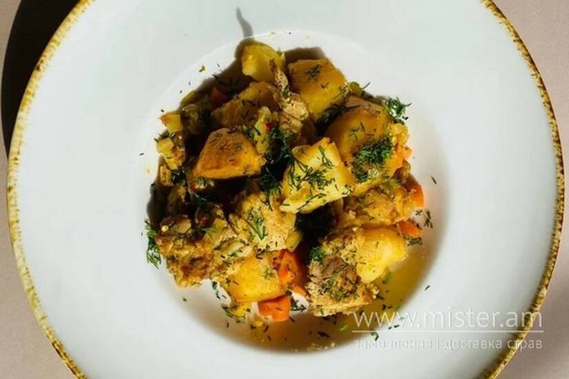 Ніжна картопелька з м`яском, морквою, цибулею та зеленню.