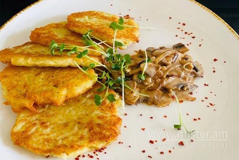 Деруни з грибочками у вершках