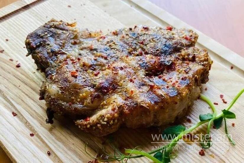 Соковитий стейк на грилі із аджикою та часником на грилі.
