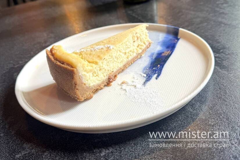 Крем-сир, сир маскарпоне на основі з пісочного тіста. Подається з шоколадною крихтою.