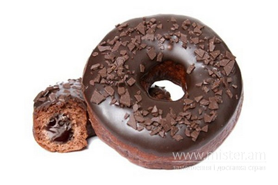 Донат приготовлений за технологією GSK (США). Начинка зі смаком шоколаду. Покритий ніжною шоколадною глазур`ю. Прикрашений шоколадною крихтою.