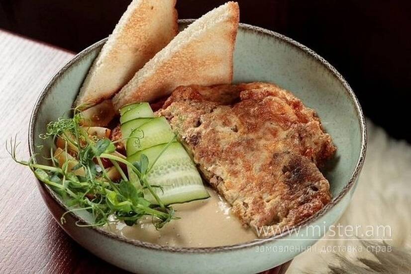 Бичі яйця подаються з цибулею у вершковому соусі.