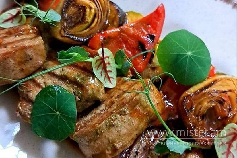 Свині медальйони з томленими овочами