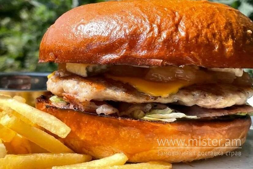 Кочерга Бургер з куркою та пікантним грушевим чатні з блакитним сиром