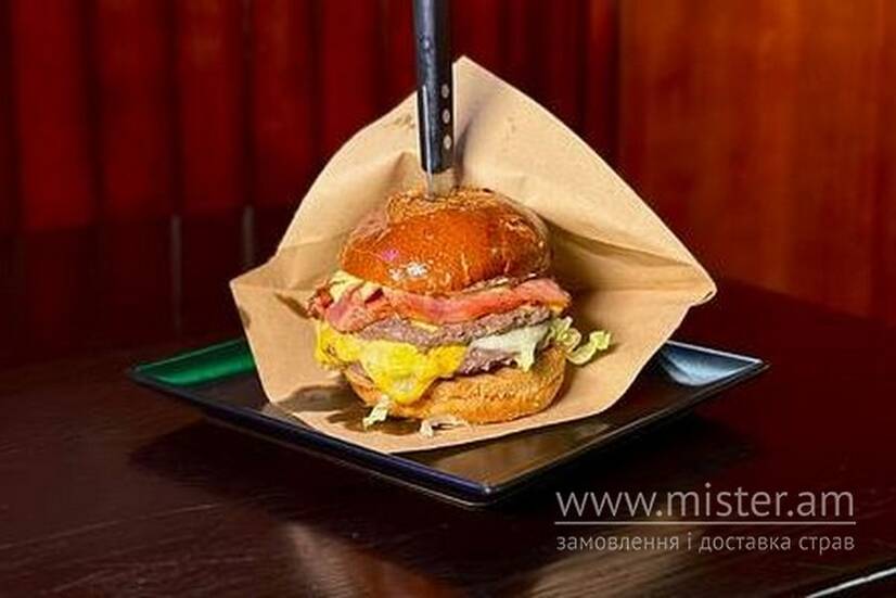 Обсмажена булочка з пармезаном приховує дві насичені котлети, три види сиру, бекон і свіжі овочі. Кожен укус — це глибина смаку і гармонія інгредієнтів.